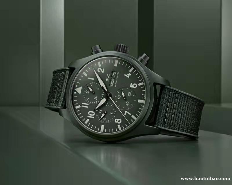 这款飞行员TOP GUN计时腕表“森林绿”特别版的陶瓷表壳大胆采用了全新颜色——绿色,其灵感取自广袤森林,神秘的寂静中,蕴藏无限力量。而这种耳目一新的陶瓷色彩被正式命名为“IWC Woodland”。