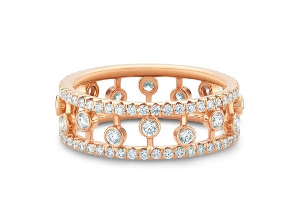 一同出镜的Dewdrop系列玫瑰金钻石戒指定价46500元,其灵感源自古罗马皇帝哈德良为自己心爱之人修建的水上宫殿。戒指上镂空设计的包镶钻石宛若欲滴的露珠般清亮灵动,两条由密镶钻石点缀的平行戒环璀璨夺目,与包镶钻石相互映衬,彰显这款珠宝作品的细腻温柔之美。