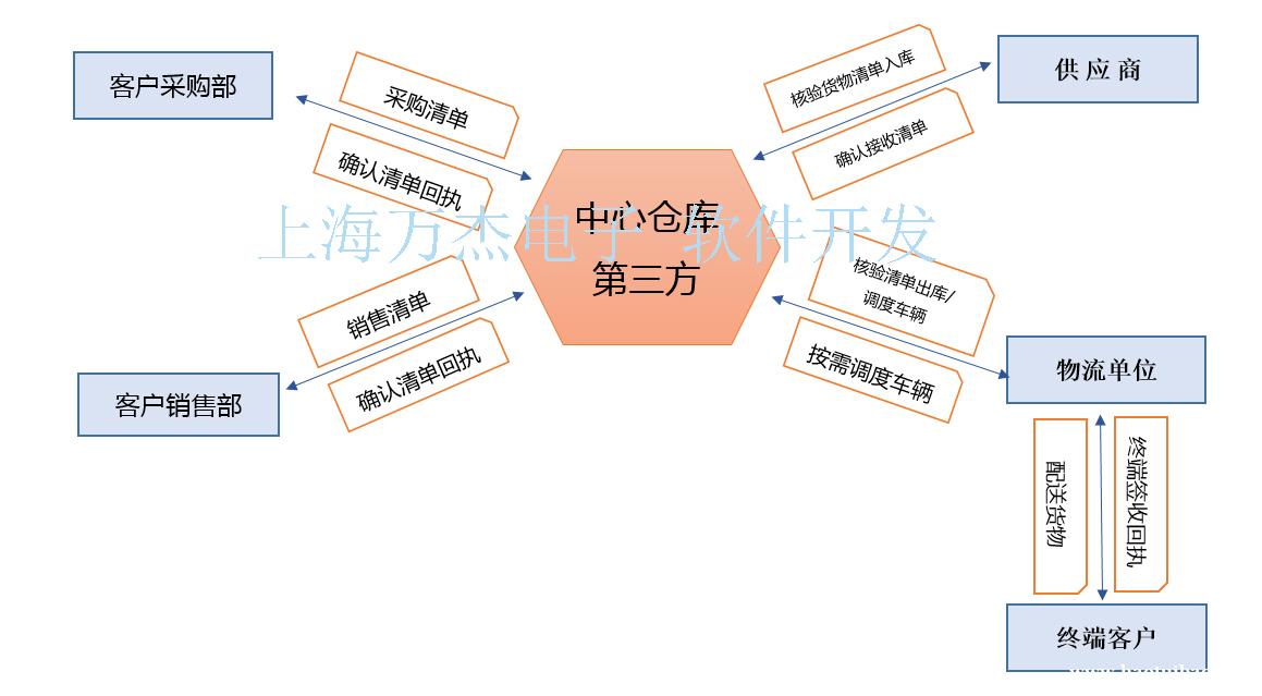 2、本系统针对第三方仓库提供仓储管理,与客户销售与采购接口对接,与物流公司车辆调度接口对接。
